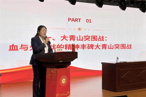 全国“最美拥军人物”、中宣部基层理论宣讲先进个人、沂蒙精神传承促进会会长、“沂蒙红嫂”后代于爱梅深情讲述了“沂蒙红嫂”这一群体的故事,立体展现了革命战争年代沂蒙人民“最后一口粮做军粮,最后一块布做军装,最后一个儿子送战场”的感天动地的奉献精神,生动诠释了“党群同心、军民情深、水乳交融、生死与共”的沂蒙精神本质。从用乳汁救治伤员的“红嫂”明德英,到舍子拥军的“沂蒙母亲”王换于,从冒着生命危险掩护革命后代的“沂蒙六姐妹”,到车轮滚滚的支前队伍,一个个鲜活的故事,一幕幕感人的场景,深深打动了在场的每一位师生,会场多次响起经久不息的掌声。