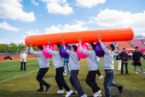 本届团队拓展活动共设5个项目,既有“一鼓作气”“力拔山河”等广受欢迎的传统项目,又有“出类拔萃”“携手并进”“眼明手捷”等新设项目,对团队协作能力和适应能力都提出了更高要求。赛前,学(研)工部(处)积极组队,利用业余时间集中训练。当日比赛中,我校辅导员代表队团结协作、顽强拼搏,展现了良好的竞技状态和精神风貌。