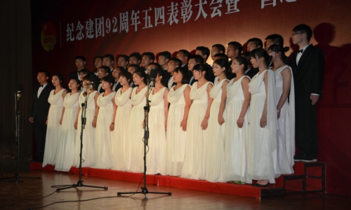 2014年5月27日下午,在庸夫楼218大礼堂举行的纪念建团92周年五四表彰大会暨“国之当歌”五四歌会上,我院荣获第二届校园文化艺术节之“国之当歌”校级合唱比赛一等奖。