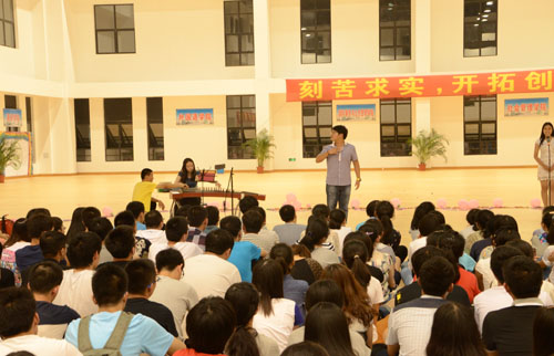 月到中秋分外明,每逢佳节倍思亲。9月8日晚 “情暖中秋•薪火相传”刑事司法学院2014新生中秋联欢会在训练馆隆重举行。院长姚建龙、院长助理徐海琨、辅导员荆德亭、谢玮洁及迎新志愿者们精心策划本次活动并陪伴2014级新生度过大学里的第一个中秋节。