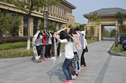 此次素质拓展活动一共有四个项目,分别是黄金组合、珠行万里、急速60秒、无敌风火轮。一开始,老师利用黄金组合这个游戏使成员们互相熟悉,彼此进行初步的了解,顺便将成员们分成两组。在取队名和口号的环节上,大家集思广益,分成了“上海野马帮”和“女人花”两队。珠行万里是个考验平衡和速度的游戏,组员们分别用硬管传球,两支队伍在游戏中一开始平分秋色,但是最终还是“上海野马帮”更胜一筹。在急速60秒的游戏中,每队分别对于一些卡片进行数字解密,进行1-30的排列,每次解密时间1分钟,一共三次机会。在游戏中,每位组员都就卡片内容进行了一些解读,帮助各自团队对数字的排列有了新的认识。前两轮似乎“女人花”队占得先机,但在第三轮中,“上海野马帮”不慌不乱,取得了胜利。而无敌风火轮则是用报纸围成圆环,各组组员站入圆环内,边走边滚动圆环,直至到达指定的终点。在制作圆环的过程中,两支队伍各有千秋,组员们分工明确,有的绑胶带、有的折报纸。最后“女人花”队凭借新颖的思维方式赢得了比赛。最终,“上海野马帮”以2:1的比分战胜了“女人花”队,并由老师分发奖品。