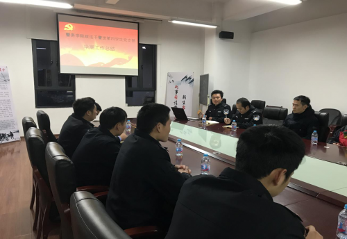 2017年12月28日下午,刑事司法学院-警务学院政法干警班第四学生党支部在B3-101会议室召开学期工作总结暨全体党员大会。会议由支部书记陈真支持,支部13名党员全部参会。