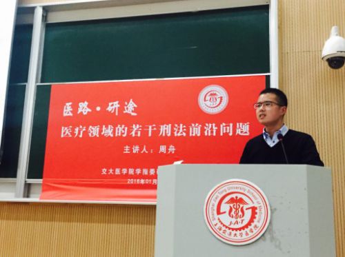 1月11日晚,我院教师周舟博士应上海交通大学医学院研究生院邀请,在上海交通大学医学院西二教学楼413报告厅顺利举办了题为《医疗领域的若干刑法前沿问题》的学术讲座,该校2015级200余名硕士生、博士生参加了讲座。