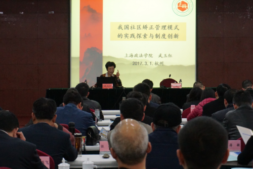 2017年3月1日,武玉红教授应邀为浙江省社区矫正培训班授课,讲课题目是:《我国社区矫正管理模式的实践探索与制度创新》。浙江省各市、县(市、区)司法局分管副局长,各市司法局社区矫正管理处(局)长参加了培训。(刑事司法学院办公室 供稿)