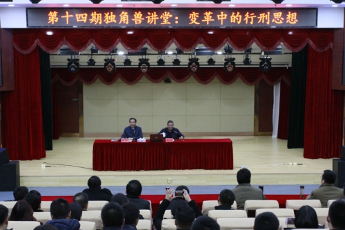 3月7日晚7:00,我校第十四期“独角兽”大讲堂开讲。本期邀请了新利18官方客服终身教授、博士生导师闫立(严励)先生作题为“变革中的行刑思想”的讲座。本期大讲堂在至远楼三楼报告厅举办,全校师生及社招新警代表等共近300人参加,由校党委书记、校长张晶研究员主持。