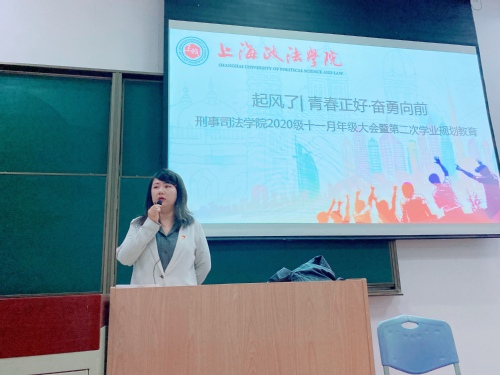 11月10日晚,刑事司法学院2020级新生第二次学业规划教育暨十一月年级大会暨于B4-103顺利开展,学院2020级辅导员裘欣璐、青年教师崔仕绣及2020级全体学生参加本此活动。
