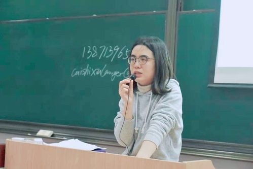 本次新生学业规划的主题是“青春正好·奋勇向前”,主要围绕着如何适应大学学习、如何合理安排大学学业进行展开。青年教师崔仕绣结合自己作为理科生学习法学的经历出发,从新生的自我认同、制定合理的试错机制、合理应对同辈的压力、崇尚正义做正直的人、“走出去”用脚步丈量社会的发展、恪守正道秉持家国情怀等方面与同学们分享学业发展的心得,希望同学们合力应对考试、学业、情感和生活压力,合理规划好自己的学习、生活,能够将书本知识幻化成为安身立命之本领。