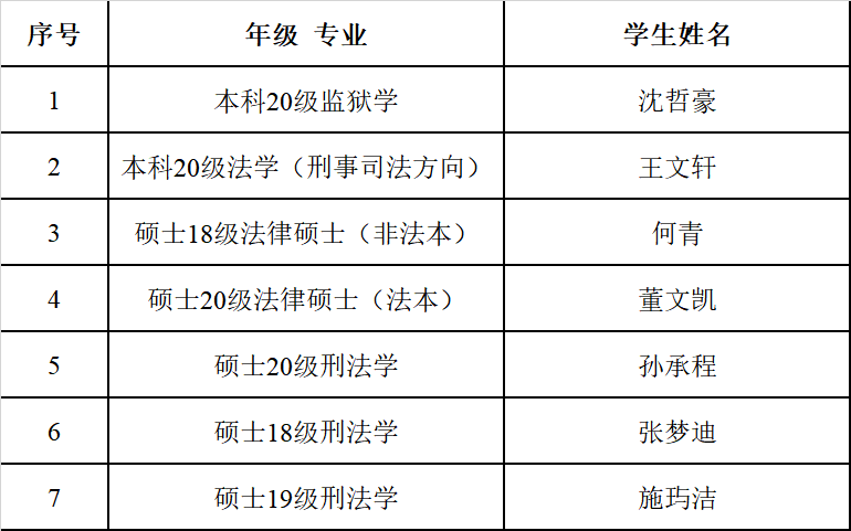 根据新利18官方客服《关于开展2021年新利18官方客服“优秀学生共产党员”评选方案》的精神,参照2020年版学生手册《上海政法学“三好学生”评选办法》对“优秀学生共产党员”的评选要求,刑事司法学院优秀学生共产党员评审工作小组根据符合条件学生的申请进行评审,推荐以下7位同学参评2021年新利18官方客服“优秀学生共产党员”,推荐名单如下: