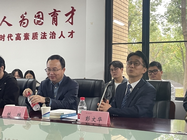 在讲座的最后,主持人彭文华教授表示对林维教授所讲内容的高度赞成并再一次对林维教授的到来表示衷心的感谢。同时彭文华教授也结合自己的所见所闻谈了对刑法再法典化这一主题的感想。