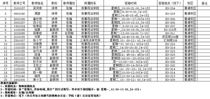 刑事司法学院纪检监察学院2023-2024学年第二学期坐班答疑情况公示