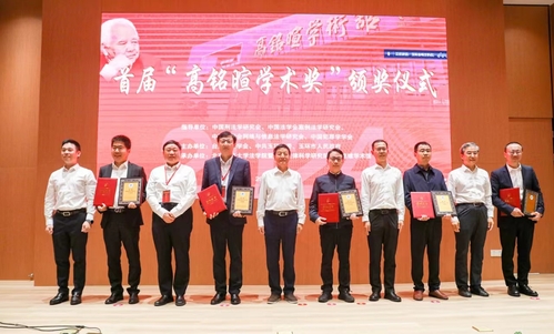 2019年11月, “人民教育家“、”最美奋斗者“高铭暄先生接受我校邀请,受聘担任我校特聘教授。“刑法是我一生的职业,更是我毕生热爱的事业,以我的名字命名这一学术奖,令我既感于家乡父老的厚爱,更感于能够生于伟大时代与我国法治事业共同成长的幸运……”高铭暄教授线上出席本次活动,在致辞中他希望学术奖能够激励更多刑法学界的同仁共同关注中国问题,提出中国方案,发出中国声音。高铭暄教授亲任评委会主任,秉持科学公正、宁缺毋滥的原则,评选出了7项成果。中政法大学刑事司法学院院长刘艳红教授的《网络犯罪的法教义学研究》、中国人民大学法学院陈璇教授的《紧急权:体系建构与基本原理》获一等奖;上海社科院法学所所长姚建龙研究员的《未成年人违警行为的提出及立法辨证》、最高人民法院研究室副主任喻海松的《网络犯罪二十讲(第二版)》等5项论文和著作获二等奖。