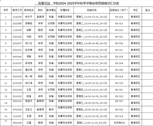 刑事司法 学院2024-2025学年秋季学期坐班答疑情况汇总表