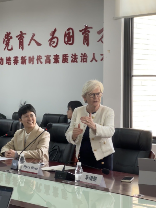讲座后,迈拉·布莱斯教授就近期摄政学院开展的“气候变化的应对性规制实践”学生交流项目进行介绍和前期沟通。刑事司法学院近年来积极探索拓展国际交流合作、提升国际化办学水平的新渠道,将继续为师生积极拓展高水平国际交流项目而不懈努力。(崔仕绣撰稿摄影)