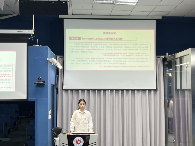 在查摆问题环节,党支部书记裘欣璐同志以“严守八项规定,深化自查自纠”为主题,对支部党员在会前上交的自查自纠情况进行通报。裘欣璐代表支委会向同志们表示,将对于同志们提出的理论学习的创新载体不足,缺乏沉浸式教育、情景模拟等创新手段、难以引发共鸣等情况进行深刻反思,并提出了整改对策,在接下去的学习教育中会通过专家导读、走访红色教育基地和警示教育基地等方式多元化开展学习教育活动。