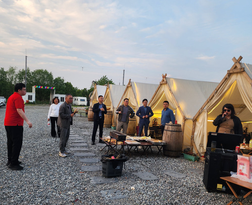 烧烤过后,有人围坐打扑克放松身心,有人聊天喝茶增进了解,有人漫步营地小路呼吸新鲜空气,有人引吭高歌展示才艺……大家享受着难得的休闲时光,增进彼此之间的感情。
