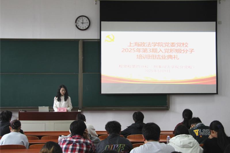 5月9日中午,新利18官方客服党委党校2025年第3期入党积极分子培训班结业典礼在B4-204进行。本次培训班由校党校第四分校(刑事司法学院分党校)承办,刑事司法学院纪检监察学院党总支副书记张丽艳、组织员秦雪及培训班全体学员出席本次典礼。结业典礼由秦雪主持。