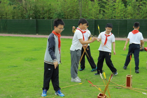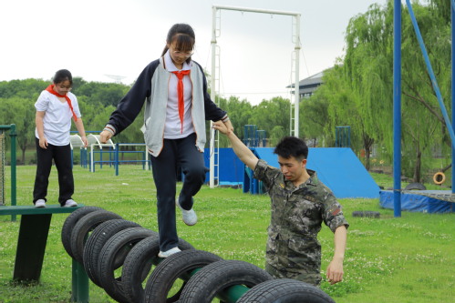 第二站是国防教育园。同学们在“多彩上政”路线2的宣讲大学生退伍士兵教官和志愿者的带领下开启了一场体能拓展与团队协作的趣味挑战。投壶比精准、平衡木练胆识、翻轮胎拼力量、匍匐网竞敏捷……一个个融合军事元素的闯关项目点燃了学生们的热情。“加油!手要稳,重心压低!”在教官的指导下,第一个同学率先完成匍匐网项目,赢得一片掌声。活动现场欢呼声与呐喊声交织,同学们在汗水中感悟坚持的力量,体会“国防精神”的内涵。这些项目既考验体能,更培养同学们的抗压能力和团队意识,是课堂教育的有益补充。