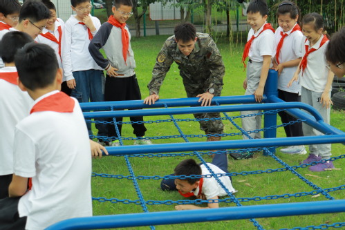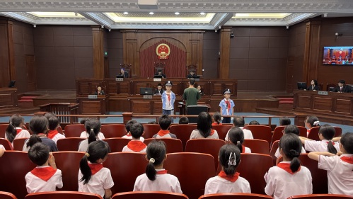在“多彩上政”路线2宣讲成员的讲解下、“红育先锋队”党员的陪伴下,小学生们通过沉浸式体验模拟法庭情景剧、趣味国防体能挑战、参观上政图书馆等环节,在行走的课堂中感受法治力量,磨砺意志品格。