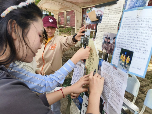 活动现场还设置了互动环节,邀请同学们手写卡片、分享感悟,让红色精神在共鸣中传递。“想最可爱的人致敬”“祝祖国母亲繁荣昌盛”……在“一句话家国”手写卡片墙前,大家纷纷写下对祖国的告白。