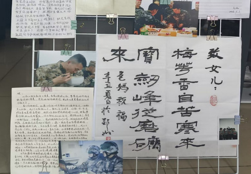 泛黄的家书记录着战士们对亲人的思念与牵挂,朴实的文字背后,是军人家庭独有的深沉情感。参展的退伍学生周雨蒙说:“这些家书是我们在军营最艰难时的精神支柱,今天分享出来,是想让更多人感受到军人的家国担当。”