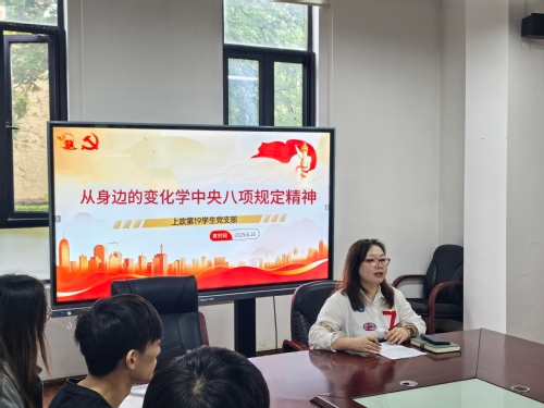 从身边的变化学中央八项规定精神 ——上政第19学生党支部开展微党课学习