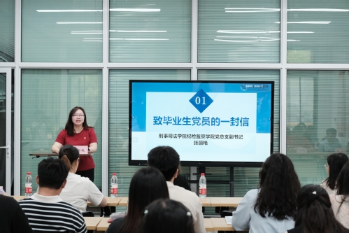为深入学习贯彻习近平新时代中国特色社会主义思想,进一步加强毕业生党员党性教育,引导其坚定理想信念、强化责任担当,6月11日,刑事司法学院于成德楼校学生党建活动中心组织开展2025届毕业生党员离校教育活动。刑事司法学院纪检监察学院党总支书记王守芬、副书记张丽艳、纪检监察学院青年教师党员王哲、组织员秦雪、各学生党支部书记以及毕业生党员参与活动,活动由秦雪主持。
