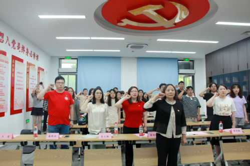 在重温入党誓词环节,党总支书记王守芬带领毕业生党员面向党旗庄严宣誓:“我志愿加入中国共产党……随时准备为党和人民牺牲一切,永不叛党。”全体党员面向党旗庄严肃立,举起右手,铿锵有力地重温入党誓词,重忆入党初心。