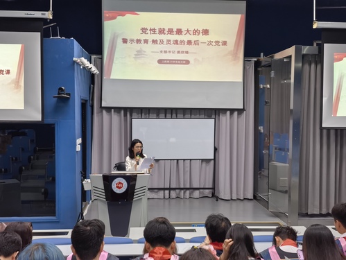 支部书记裘欣璐面向同学们讲述《党性就是最大的德!警示教育·触及灵魂的最后一次党课》,深入剖析了违反中央八项规定的案例,警示同志们要以案为鉴,筑牢思想之基,未来在工作岗位上时刻绷紧纪律规矩之弦,保持思想上的纯洁和政治上的坚定。