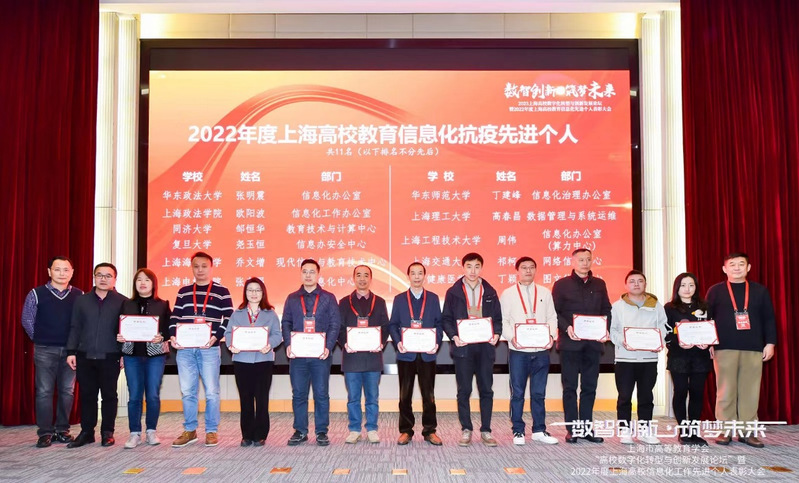3月3日至4日,上海高等教育学会信息管理专业委员会和上海高等教育学会校园网络专业委员会共同主办的2022年度上海高校教育信息化工作先进个人表彰大会暨“高校数字化转型与创新发展论坛”在上海崇明顺利举行。为鼓励上海市高校信息化建设与管理人员的敬业奉献精神,表彰2022年度上海市高校信息化建设与管理工作上做出显著贡献、表现突出的先进人员,上海市高等教育学会信息管理专业委员会与上海市高等教育学会校园网络专业委员会,在全市高校范围内组织评选和表彰2022年度上海市高校信息化工作先进个人和信息化抗疫先进个人,经专家评审,我校信息化工作办公室欧阳波同志被评选为“2022年度上海高校教育信息化抗疫先进个人”。