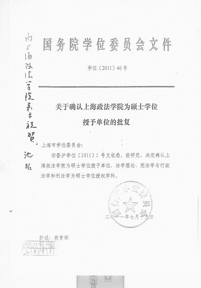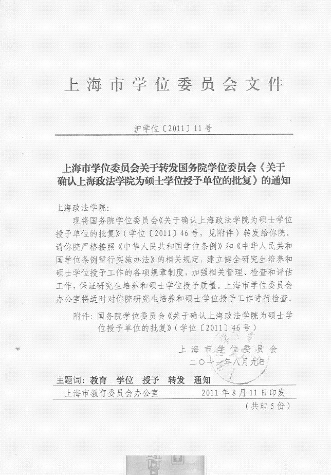 上海市学位委员会关于转发国务院学位委员会《关于确认新利18官方客服为硕士学位授予单位的批复》的通知