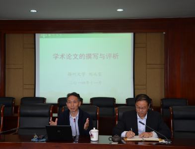 11月6日下午,党委宣传部邀请扬州大学刘从富教授来我校作题为“学术论文的撰写与评析”的学术讲座。讲座在求实楼413会议室顺利举行,校党委宣传部部长张森年教授主持,我校部分本科生以及2013级部分硕士研究生参加。