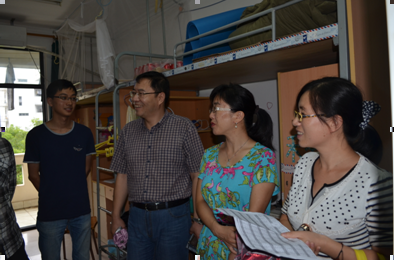潘牧天副校长一行深入到新生宿舍,详细询问同学们的家庭情况、入学报到和对学校环境的适应情况。在与学生的亲切交谈中,他希望同学们能尽快融入上政的大家庭,珍惜时光,好好学习。潘校长还嘱咐在场的工作人员竭尽所能在政策允许的范围内为新生们提供各种便利。赵俊处长则表示研究生处一定全力以赴配合好社区管理工作,目的是帮助研究生更好地学习和生活。