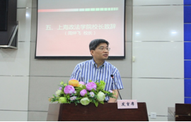 最后由周仲飞校长为研究生新生寄语。他首先代表学校对2015级硕士研究生的到来表示热烈的欢迎和诚挚的祝贺。他详细介绍了我校近年来发展现状和学科建设情况,勉励大家应朝气蓬勃地融入中国司法改革的发展洪流和学校良好的发展势头中去。周校长寄语研究生:要确立对法律的信仰,因为“法律如果不被信仰,就等于形如虚设”;其次要大家立德为先,以德立身,以德润身。在复杂的社会大环境中不迷失自我,用道德规范自己的言行,努力培养善良、正直、诚信的优良品质。最后,他要求大家秉持“干坐板凳十年冷”的决心和勇气,坚持不懈地寻找自己的学术兴趣,不断追求真理。他与新生共勉:在追求真理的道路上,要永葆一颗进取的心,一份强大的信念,一份不屈不饶的精神。只要这样,才能从“必然王国”走向马克思所说的“自由王国”。周校长的发言务实而深刻,引发了在场师生的思考和共鸣。