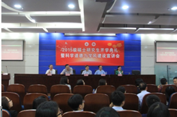 9月22日上午,我校在庸夫楼112会议室隆重举行2015级硕士研究生新生开学典礼。参加此次典礼的有:我校校长周仲飞教授、副校长关保英、副校长潘牧天教授,以及2015级硕士研究生导师、硕士点的负责人、二级学院领导、相关职能部门领导、研究生处工作人员和2015级全体硕士研究生。