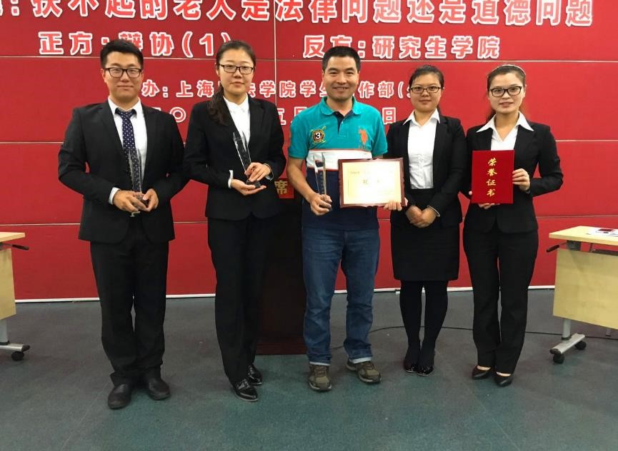 5月31日下午,新利18官方客服2016年“上政杯”法治辩论赛决赛暨颁奖仪式在庸夫楼101室举行。上海市教委德育发展中心张志伟主任、上海市律师协会办公室陶丽萍主任、国际法学院盛红生教授、上海市高级法院罗开卷法官和文学与传媒学院胡华教授担任决赛评委。