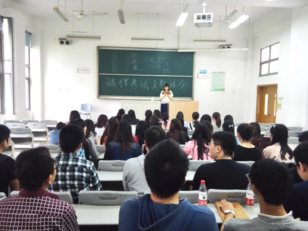 临近期末,为了更好地建设我校优良学风,推进学术诚信教育,新利18官方客服2015级法律硕士(法学)团支部于2016年5月24日上午在主教学楼103A开展了有关诚信考试的主题班会。