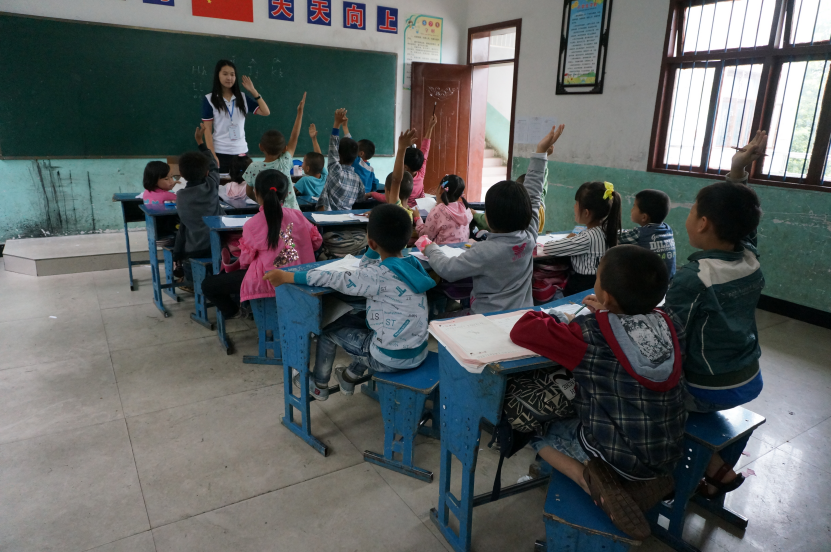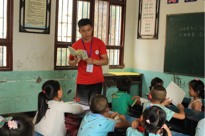 随着支教活动的推进,队员们逐渐融入了当地的生活,日常教学步入正轨;孩子们也打开了心扉,将这些新来的大哥哥、大姐姐们视为自己亲密的朋友。清晨,山间清凉,花草挂露,鸟啼蛙鸣,金群小学的孩子们早早来到学校,打扫嬉闹,队员们就在这一片繁声中醒来。而此时,两名值班的队员早已为大家准备好早饭,队员们用餐完毕后,就开始了忙碌而充实的一天。上午,4名队员负责学前班的两堂课。去往教室的路上,总遇到一张张天真可爱的笑脸,用稚嫩的声音喊着“老师好”,回应的同时,身为一名老师的自豪与骄傲油然而生。大课间,学前班的孩子们一个个甜甜地喊着老师的名字,呼唤着队员们一起游戏。丢手绢、123木头人、老鹰捉小鸡……孩子们银铃般的笑声让队员们寻觅到了久违的童真。高年级的孩子们则在篮球场上奔跑跳跃,时不时还与老师们来一场PK赛。除了篮球,支教团还为孩子们带来了羽毛球及网架、毽子、皮筋等体育用具,希望丰富孩子们的课余生活。课余,队员们会与同学们聊天谈心,有的孩子害羞沉默,有的孩子上课过分好动,孩子们情绪变化的点滴都在队员们的眼里。同学之间偶有摩擦,队员们也总是帮着和解。队员们和孩子们相处的点点滴滴加深着彼此间的情谊。同学们时常送给老师亲手做的折纸、队员们的画像和用校园内的栀子花做的贴纸作品,写着想对老师说的话。孩子们稚嫩的笔迹、真诚的寄语留给队员们无限的温馨和感动。放学后,支教团成员们根据课堂反馈、学生的学习吸收情况,课后与学生交流,不断调整教案,以学生为中心,实现课堂效果最大化。表演、舞蹈等趣味课程让孩子们感到新奇有趣,队员们丰富的知识、生动的讲解深深地吸引着孩子们,课后孩子们时常围绕着老师答疑解惑,学习从课堂延续到课外。支教团成员们担任课程之外还身兼班主任,每个年级两位,全方面地关怀孩子们的学习生活。队员们与孩子们年纪相差不大,更像孩子们的大哥哥、大姐姐,孩子们乐于与队员们分享自己学习、情感、生活的点滴,支教团成员们以自身的经历激励孩子们努力学习、成长成才。