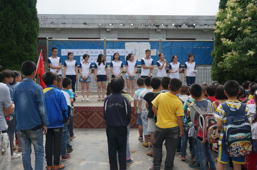 本次支教课程设置在前三届的基础上予以创新,以综合素质培养为核心出发点,结合新利18官方客服法学院研究生的背景,并结合孩子们的实际需求,设计了“法律常识进校园”、“才艺技能进课堂”和“素质拓展进班级”三大系列课程,开设了趣味英语、实用英语、地理、历史、表演、绘画、手工、音乐、舞蹈、法律常识、生理卫生、自然科学共12门课程,并开展“法律知识竞赛”、、“户外素拓”、“文艺汇演”等一系列综合素质活动,使孩子们不仅可以学到了基础的文化知识,同时拓展综合素质能力,追求全面发展。在支教开班仪式上,金群小学刘龑校长高度赞扬了我校历届研究生支教团为金群小学的发展带来的许多新鲜事物,注入了新的活力,并对我校本届研究生支教团表示热烈欢迎以及充分支持。为了表示对我校支教团成员到来的热烈欢迎,金群小学的学生为大家进行了精彩的舞蹈表演以及含有丰富安全知识的快板表演,学生们热情的笑脸让支教团成员倍感温馨。