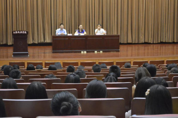王瑶老师首先对国际交流项目进行介绍。她从我校一名女生参加学校交流项目而被国外知名律师事务所录用为例,向新生们讲述国际交流带给学生的机遇和历练。王老师介绍道,我校现有短期交流项目以及学位项目两种,为所有有意向的本科生以及研究生提供交流平台。接着,王老师对于海外交流奖学金进行介绍。她强调,上海市教委自2011年“十二五规划”开始,资助市属高校在籍学生对外交流活动,此外,我校对于硕士研究生对外交流也有一定的政策倾斜,资助金额最高达到三万元。最后,王老师对美国印第安纳大学罗伯特麦肯尼法学院、加拿大蒙特利尔大学、英国利兹大学以及台湾玄奘大学等交流项目进行了详细的介绍,希望有意向的同学可以根据自身需求以及能力选择适合自己的交流项目。