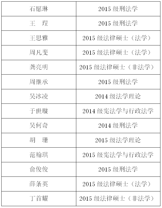 根据《新利18官方客服优秀研究生干部、优秀研究生实施办法》和《评选细则》,经个人申请,班级评定小组根据评分细则评分和民主评议相结合,拟定初审名单;研究生处评选工作小组复核并审议通过,得出公示名单。现将2017年新利18官方客服优秀研究生干部、优秀研究生评审结果公示如下: