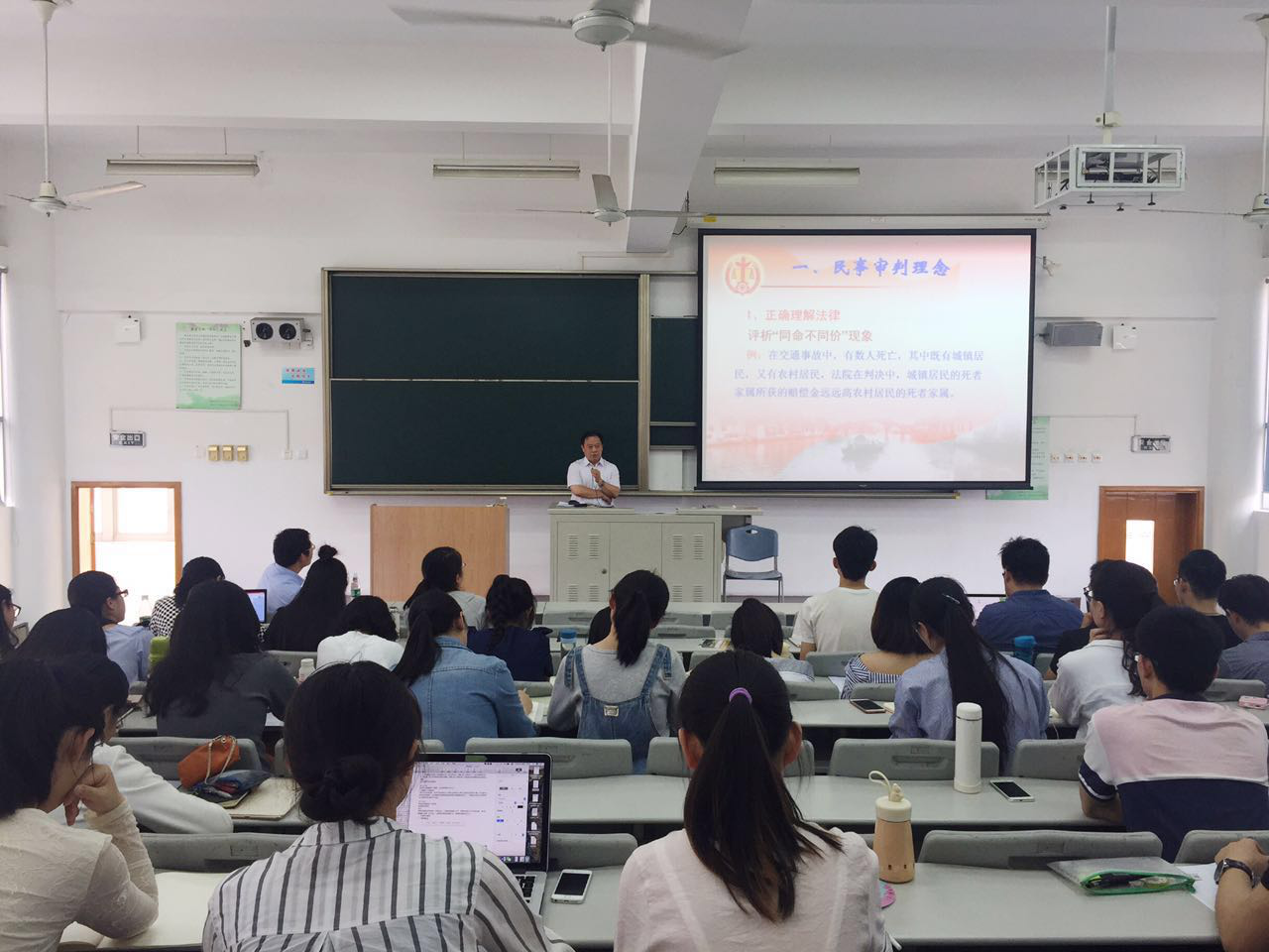 5月25日下午,上海市青浦区人民法院胡春明副院长应邀以“民商事审判理念和方法”为题为我校研究生作学术讲座。本次讲座由我校研究生处副处长刘英明副教授主持,研究生处处长赵俊副教授点评。