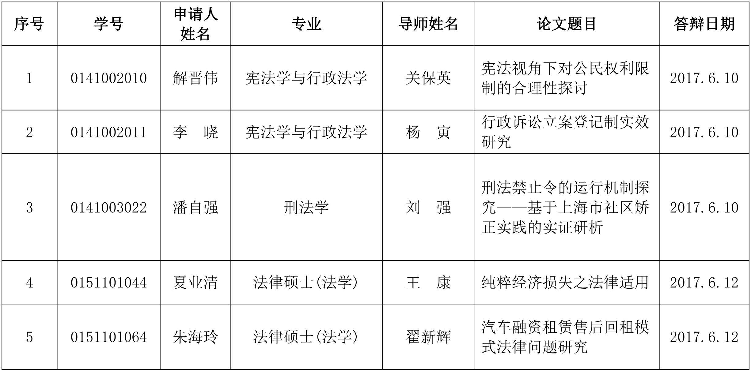 经学术不端行为检测、上海市论文盲审抽检、研究生在读期间科研情况考核、学位论文评阅、学位论文答辩等环节,由本人申请、校内外论文评阅专家和论文答辩委员会推荐,校学位评定委员会审核和投票表决,以下5篇论文获评2017年新利18官方客服优秀硕士学位论文: