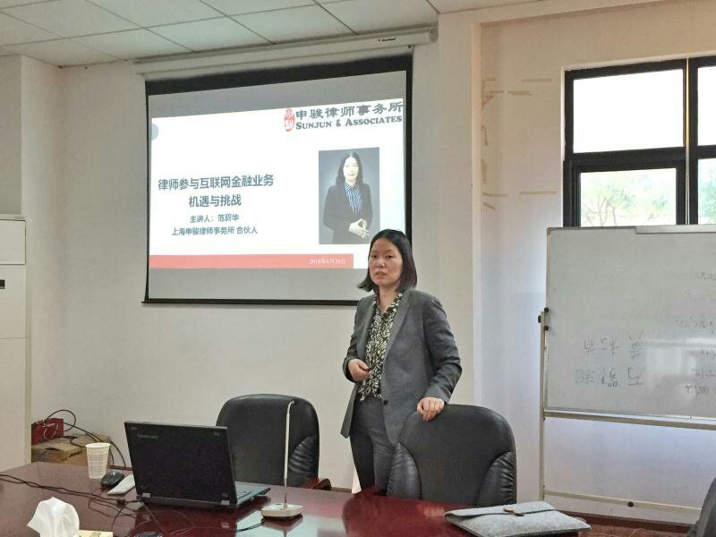 5月8日,国际法学院、研究生处在B1-217共同举办了“法说”第十五期讲座:互联网金融律师的机遇与挑战。主讲人为上海申骏律师事务所合伙人范碧华。国际法学院齐萌副教授主持了讲座,国际法学院部分研究生聆听了本场讲座。