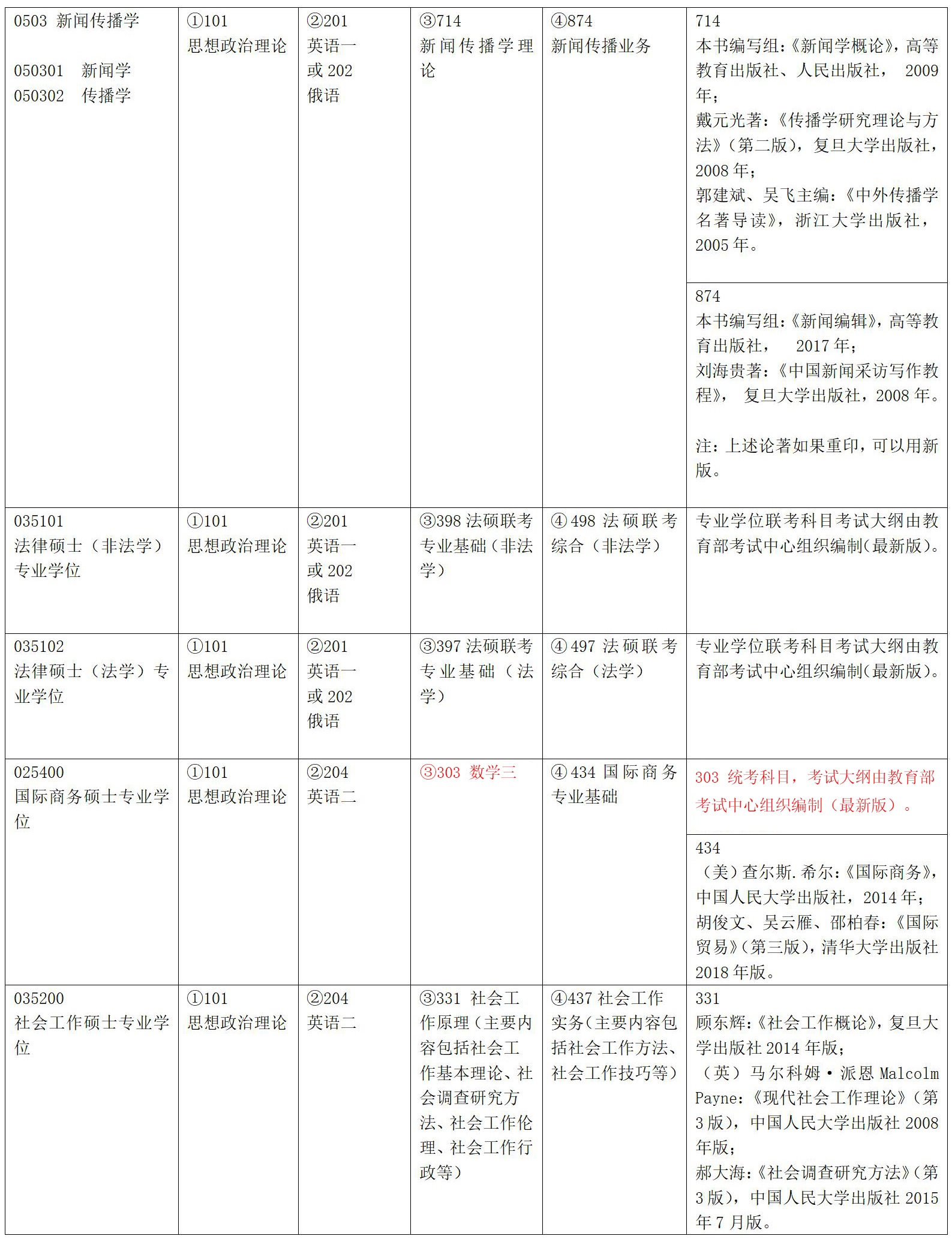新闻与传播专业学位硕士研究生入学考试初试科目为思想政治理论、外国语、两门业务课,其中思想政治理论、外国语(英语二或俄语)的命题由教育部考试中心承办,两门业务课(新闻与传播专业综合能力、新闻与传播专业基础)由学校自行命题。