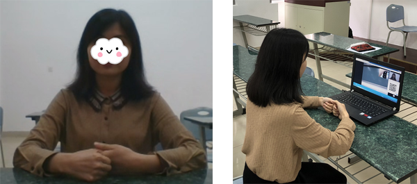 (3)【主机位】设备需要正向面对考生,复试全程开启,摄像头正对考生。复试过程中,要求视频中考生界面底端始终不得高于腹部,双手须摆放于桌面上,全程在视频录像范围。【副机位】手机作为远程面试云监考,摄像头需摆放在考生侧后方(与考生后背面成45°角),能够全程拍摄考生本人和电脑屏幕以及桌面周边场景,复试全程开启。主副机位位置、主机位镜头画面和副机位镜头画面应参照下列图示: