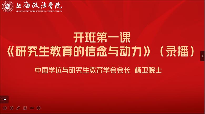 之后,与会人员共同观看了由中国学位与研究生教育学会会长杨卫院士主讲的开班第一课《研究生教育的信念与动力》(录播)。在第一课中,杨卫院士以研究生教育动力学角度,从研究生教育的定量表征、分析性案例研究、学科建设的六层境界等多维度详实地讲述了过去、现在的中国特色研究生教育,展现了定量的、发展的、和谐的研究生教育学理念,丰富了新聘导师研究生教育的知识理论体系。
