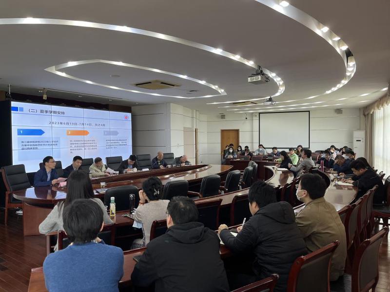 教务处副处长曾智平对近期本科教学安排、教学保障等作总体汇报,从教学运行口对本科生毕业论文工作、夏季学期安排、“十二期双创”做出工作安排,从教学研究与建设口对本科专业及课程建设、本科课程教学大纲、校级教学成果奖评选做进一步汇报说明。留学生工作办公室主任欧阳美就HSK考点建设情况、国际学生全英文专业申报情况、2022年获评的国际学生全英文示范课课程激励情况向与会人员做了汇报。教学质量督查与评估办公室主任李起汇报了审核评估整改督导复查情况、同行教师听课评课和学生期中评教相关工作安排、“示范性本科课堂建设”及“教学创新月”活动相关情况。继续教育学院院长张军汇报了学历继续教育工作情况,非学历培训情况以及报请学校继续研究推进的相关工作情况。研究生处副处长卫磊通报了近期研究生日常教学管理情况、研究生教育改革项目申报情况、研究生毕业审核工作情况和研究生实习实践情况。
