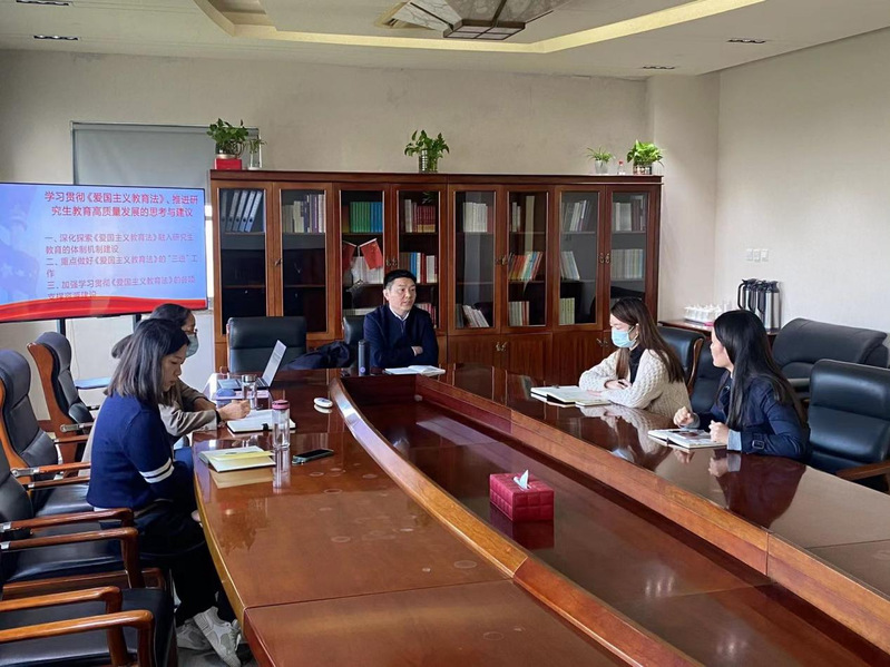 十四届全国人大常委会第六次会议于10月24日表决通过《中华人民共和国爱国主义教育法》,自2024年1月1日起施行。11月14日,研究生处开展专题学习,就学习贯彻《爱国主义教育法》、推进研究生教育高质量发展展开探讨。