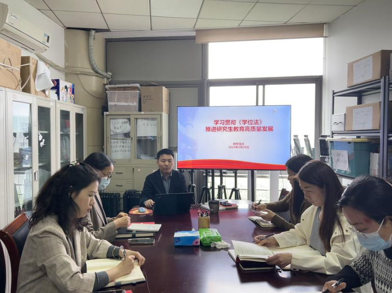 十四届全国人大常委会第九次会议于4月26日表决通过《学位法》,自2025年1月1日起实行。4月28日,研究生处开展专题学习会。