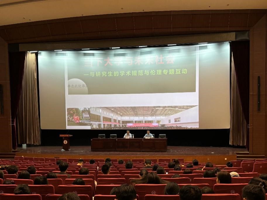 第二阶段为2024级全体新生入学指导讲座,由研究生处相关负责老师分别从研究生的培养及系统使用、论文的开题、中期考核、预答辩等方面对新生进行指导和答疑解惑。讲座结束后,同学们纷纷表示收获颇丰,表示在以后的学习生活中更加明确了目标,遵守学术规范与伦理,养成良好学术习惯。